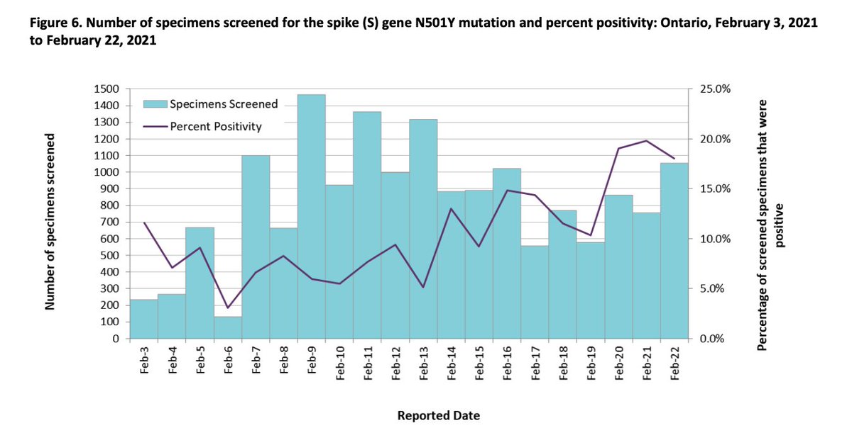 Ontario is screening all positive COVID cases for the N501Y mutation present in B.1.1.7 and the trend does not look good. Total case counts (and so deaths) will certainly be on the rise again soon as B.1.1.7 begins to dominate. 😢